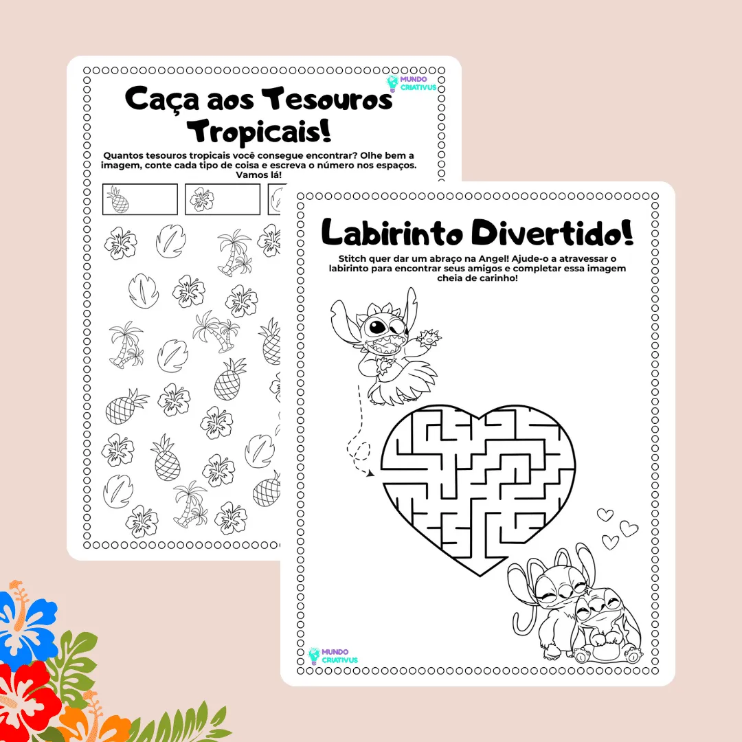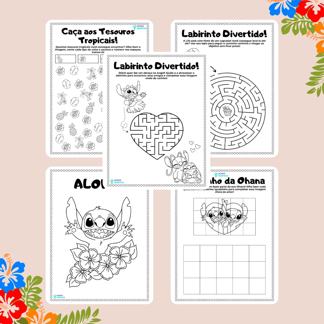 Nosso kit para imprimir é uma aventura completa, com mais de 25 páginas de desafios e jogos que celebram a amizade e o verdadeiro significado de “Ohana”. É diversão e aprendizado garantidos!